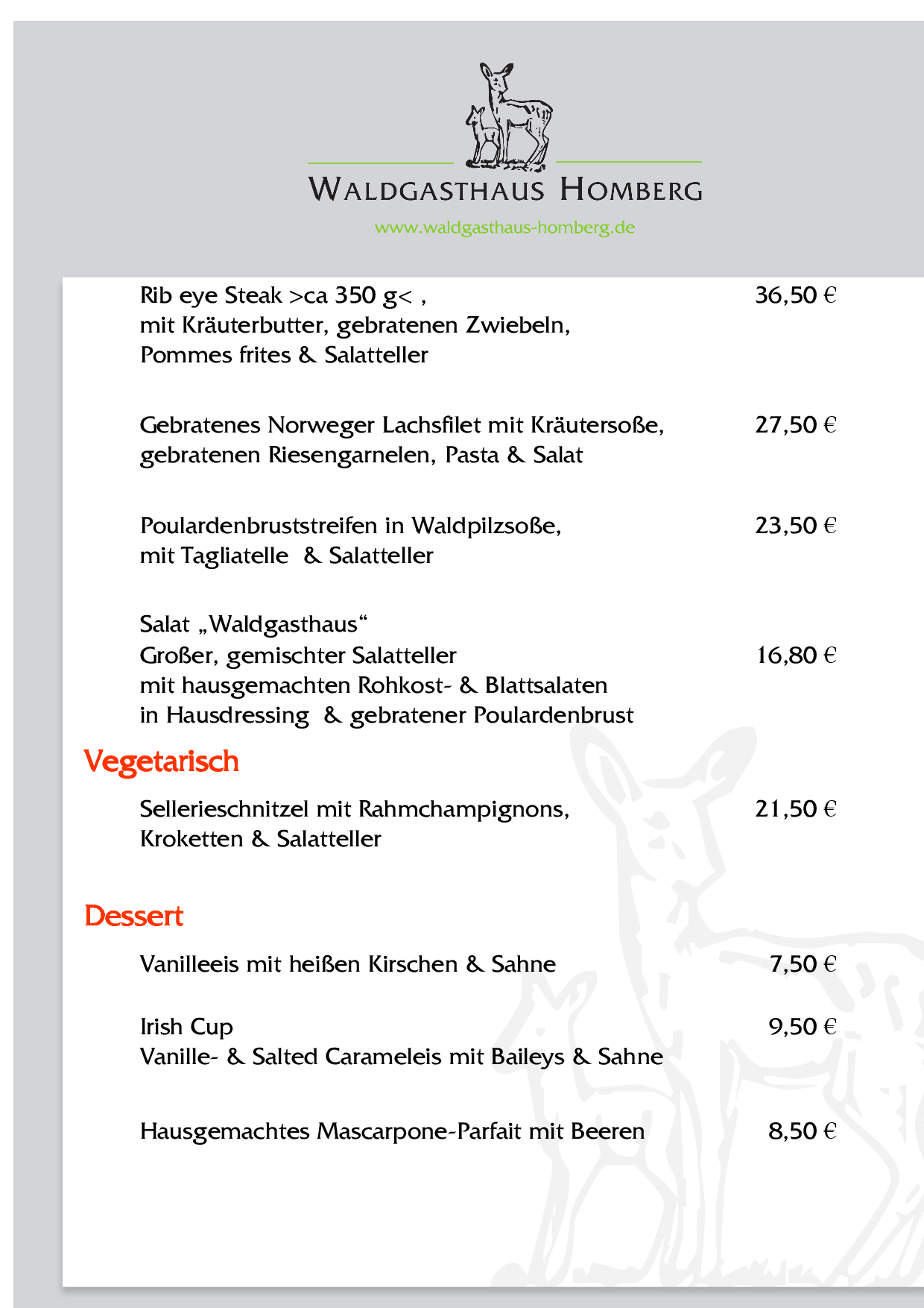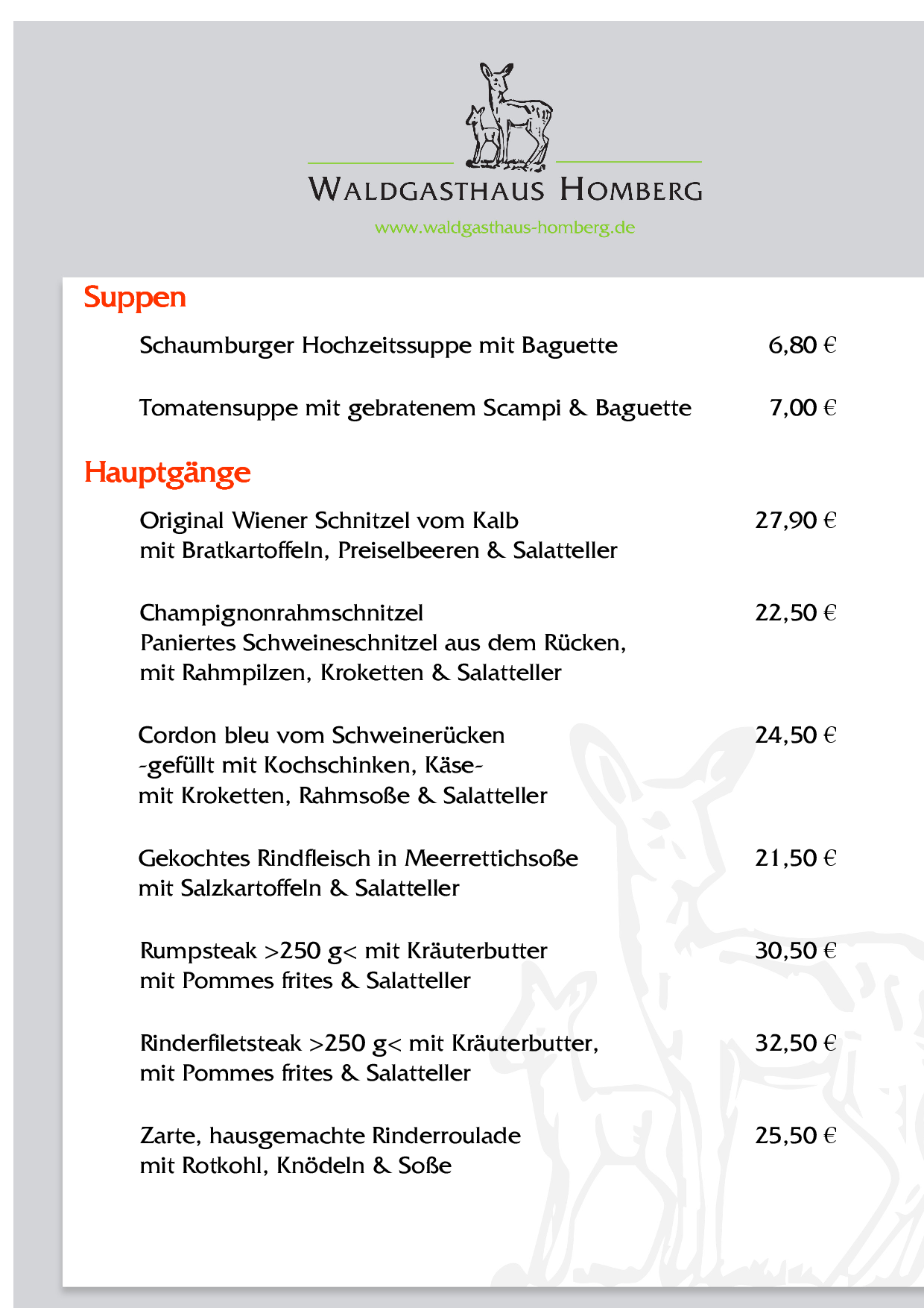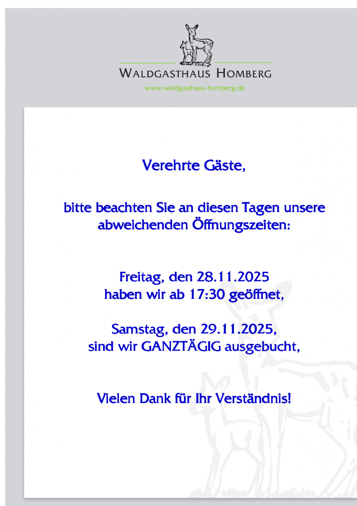 Genießen Sie den Charme unseres stilvollen Waldgasthauses in modisch-rustikalem Ambiente. Unser erfrischendes kulinarisches Angebot reicht von der ausgezeichneten gutbürgerlichen Küche bis hin zu ausgesuchten Spezialitäten. Für Ihre Festlichkeiten stehen Ihnen ideale Räumlichkeiten für 10 bis 230 Personen zur Verfügung.